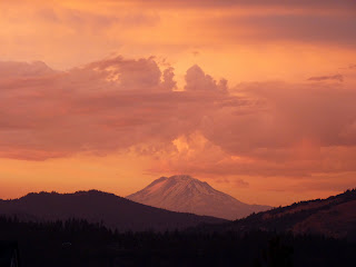 Our friends hiked up Mt Klickitat (Adams) in July and skied down. We took this picture from our deck about the same time. There's still a few thousand feet of vertical snow left on the ground.