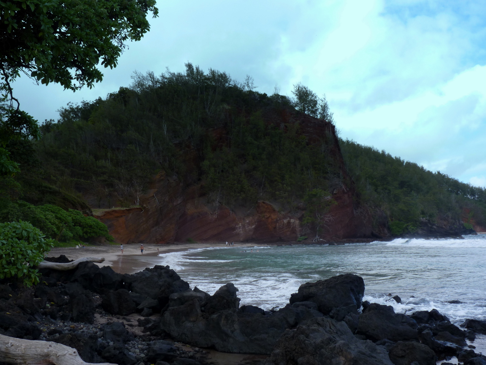 We proceeded toward Hana stopping at Waianapanapa park for the black sand beach and caves (very nice) and after Hana Koki beach (slightly redish brown sand beach also very nice). But we didn't have much time to linger in Hana as we still had to get to Oheo gulch for the hike to Waimoku. We left Pukalani at 9am and didn't reach Hana until 2-ish. At this point we started planning a return visit to Hana, but instead of rushing through we would spend the night (perhaps camping) and bring some bikes to really enjoy the scenery.