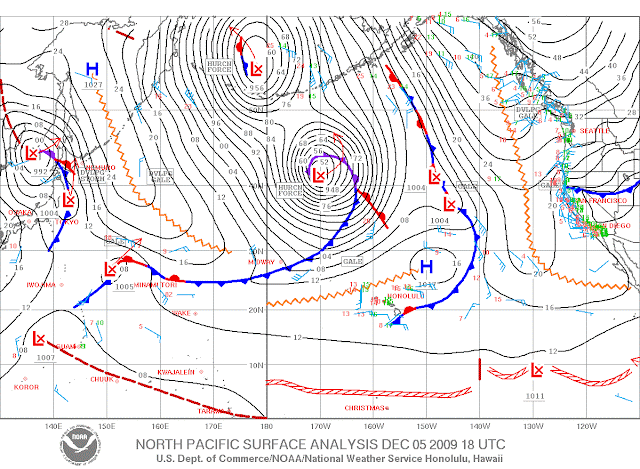 Nice! I felt like Bill Murray in Groundhog Day. Ironically the root cause of our cold wind was the same weather pattern sending giant surf of "historical proportions" Maui's way. Here's a look at the pacific weather map from that particular moment in weather history.